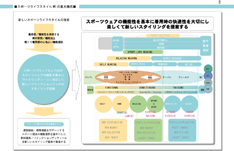 クライアントによって想定された商品と、調査等によって分析された市場特性に基づき、商品のポジションイングの明確化を行う。