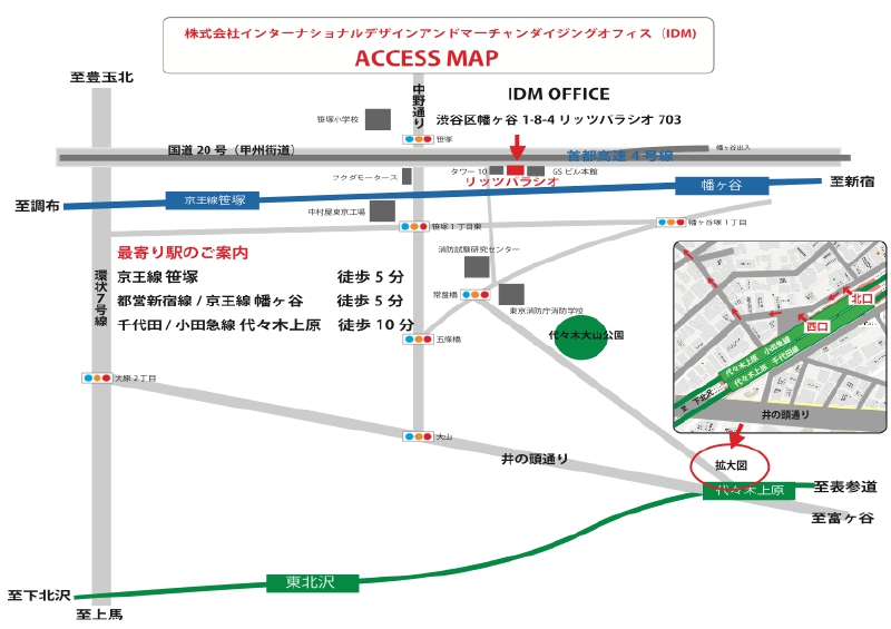 株式会社インターナショナルデザインアンドマーチャンダイジングオフィ(通称社名 株式会社アイディエム)の会社概要や業務履歴、アクセスマップなどの情報はこちらをご覧ください。 |