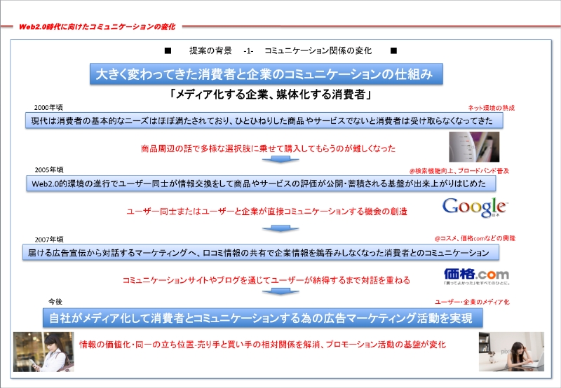 企業と消費者のコミュニケーションの仕組みが大きく変化する中、重要なことはコミュニケーションサイトやブログを通じてユーザーが納得するまで対話を重ね、消費者と企業が同じ価値観、同じ立ち位置でコミュニケーションすることだと言えるでしょう。